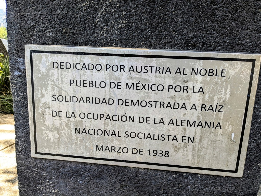 In Mexiko-Stadt gibt es seit 2019 einen Gedenkstein mit Inschriftentafel auf einer kleinen Grünecke mitten in einer breiten Autokreuzung, wo sich der Paseo de la Reforma und Insurgentes kreuzen, in Nähe des mexikanischen Senats. Der Text auf der Tafel würdigt Mexikos offiziellen Protest gegen die Annexion Österreichs. Die Skulptur hat der österreichische Künstlers Mathias Hietz geschaffen und ist ein Geschenk Österreichs an Mexiko als Dank für den offiziellen Protest.