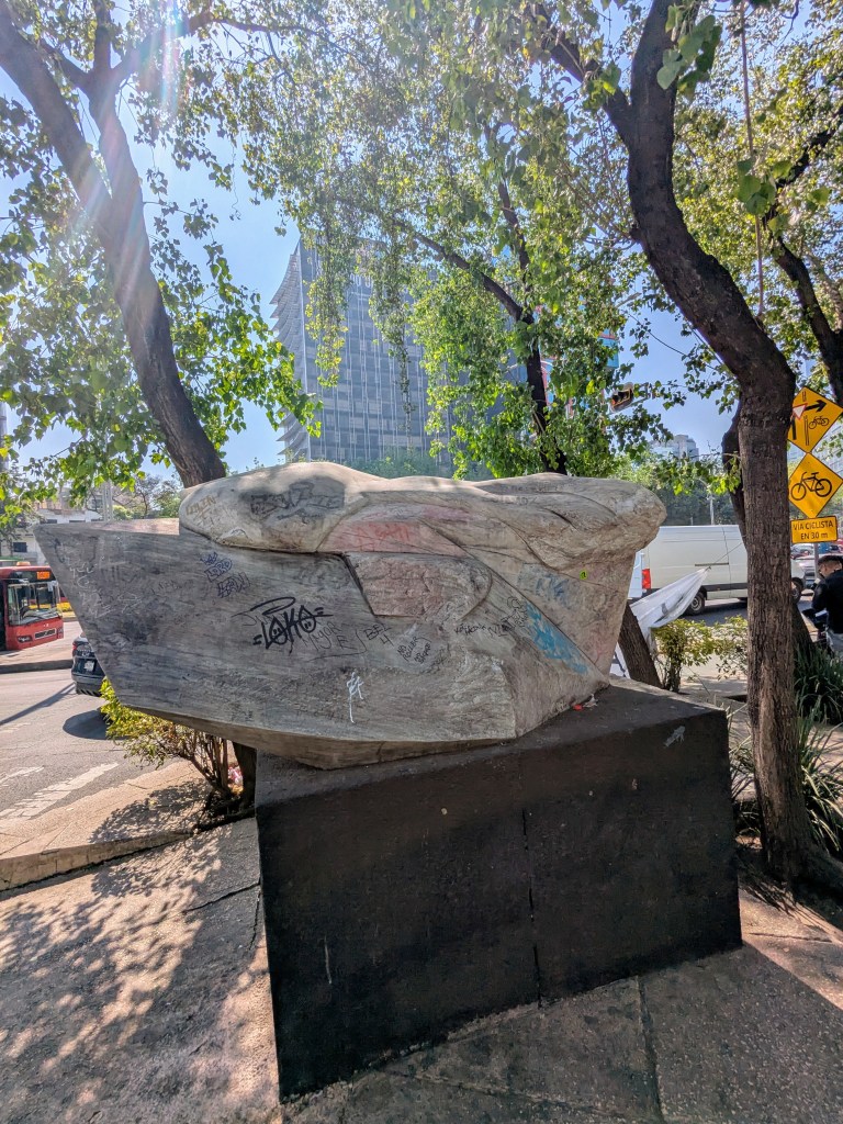 Schrifttafel auf dem Gedenkstein in Mexiko-Stadt