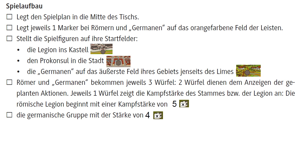 Wir sind gespannt auf die ersten Rückmeldungen zum Spiel. Leider konnte der Verlag noch nicht sagen, ob und wann die übrigen Spiele der Reihe, die mit der Steinzeit beginnt, erscheinen werden. Für den Verlag ist die Arbeit mit Spielen ein mutiger Schritt in verlegerisches Neuland und so hat sich in die Anleitung beim Spielaufbau leider ein Fehler eingeschlichen. Die Anfangswerte für die Kampfstärkewürfel sowie die Bildverweise fehlen beim Spielaufbau. Deshalb habe ich hier eine korrigierte Version als Bild eingestellt.