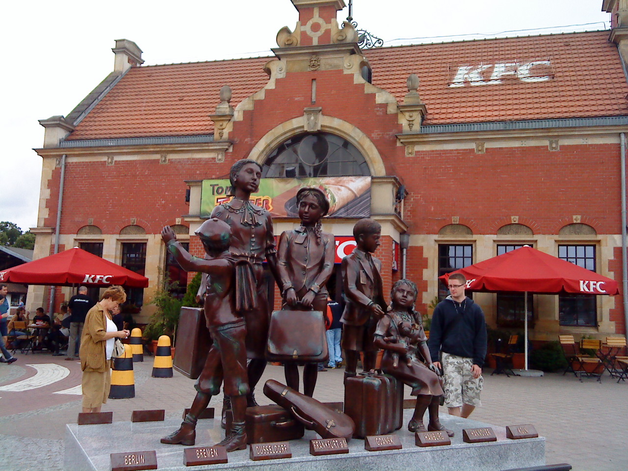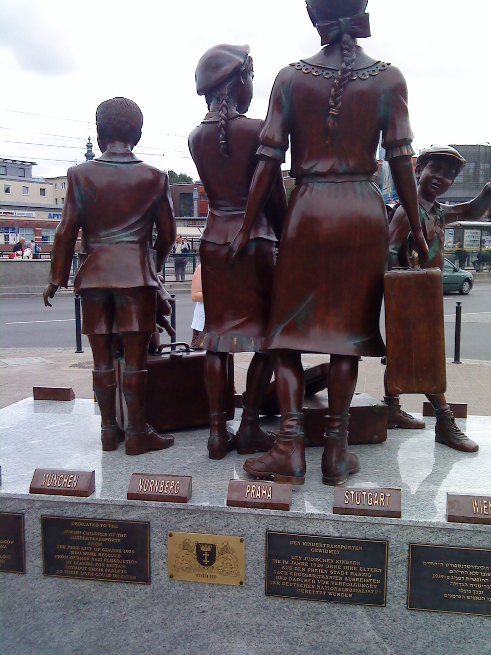 Bekanntlich sieht man nur, was man weiß… und zufällig war ich diesen Sommer sowohl kurz in London als auch in Danzig. Aufmerksam geworden durch einen Artikel aus geschichte lernen vom Mai 2009 über die  „Mahnmale zur Erinnerung an die Kindertransporte“ entdeckte ich mit großer Überraschung, dass vor dem Hauptbahnhof in Danzig eine Kopie des Londoner Denkmales von 2006 steht, das von Frank Meisler, einem gebürtig aus Danzig stammenden Künstler, geschaffen wurde. Erst bei genauem Hinsehen merkte ich, dass es sich gar nicht um eine Kopie handelt. Die Denkmäler sind ähnlich, aber verschieden. Bei dem Danziger Denkmal dreht sich der eine Junge noch einmal winkend um; in London schauen einige Kinder noch unsicher aber zugleich neugierig umher.  Es ist sicher nicht verkehrt  bei dieser ungewöhnlichen Denkmalkombination an die Darstellung von Abschied und Ankunft zu denken.