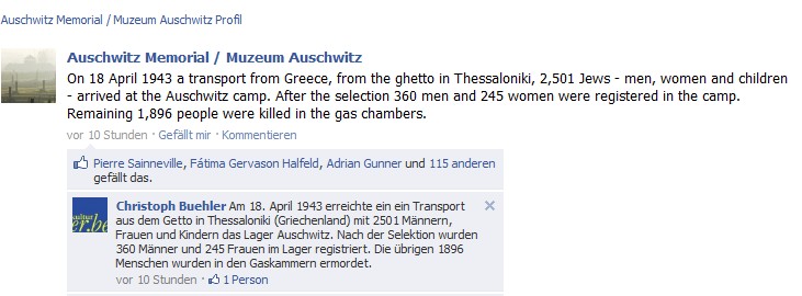Was erwarten die Museumsleute in Auschwitz vom Posten solcher Nachrichten auf Facebook? Und was erwarten sie von ihren „Fans“ auf der Seite? Wie können/sollen sie darauf reagieren?